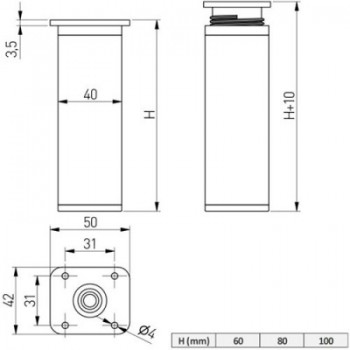 Добавить в избранное Ножка d30 100мм хром Ножки кухонные Быстрый просмотр Тип: Регулируемые Цвет покрытия: Хром полированный Длина: 100 мм Форма: Цилиндрическая Допустимая нагрузка (на 1 шт.): до 50 кг... Цена 2,54 BYN